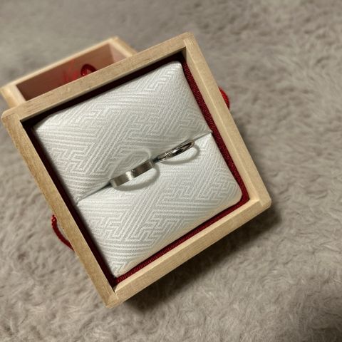 2人ともイエローゴールドにしました。 シンプルでおしゃれで満足です。 日本人として日本ブランドを身につける喜びを 感じています。 何度も試着して細身のデザインが自分達には 合っていると思ったのでこの指輪に決定しました。