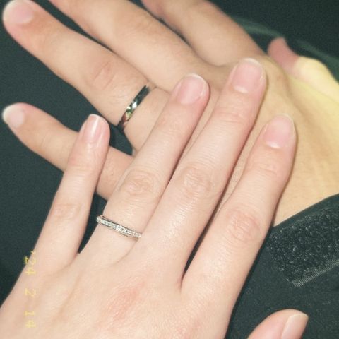 派手すぎず、だけど結婚指輪をつけてる感は出したかった から細めのものよりも素材感がある太すぎず、細すぎないデザインを選びました。 妻の指輪は最初は1つだけダイヤがある指輪にする予定でしたが やはり、実物を色々見てみて 一生モノだからシンプルかつ 華やかに見えるものをとダイヤが多めに施された 少ししなやかさが表現された指輪を選び、 夫の自分はほんとにシンプルで壊れにくいダンゾウの物を選びました。