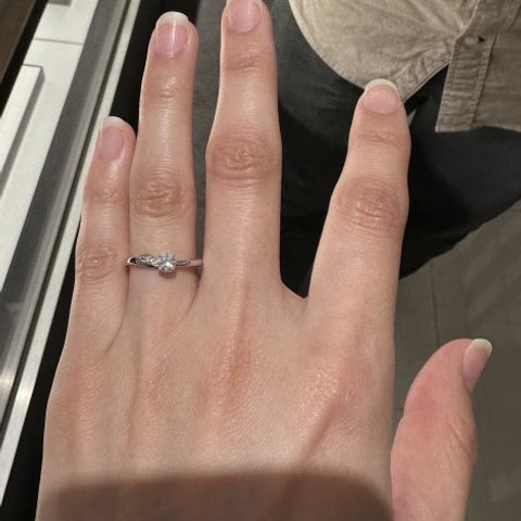 とにかく上品でかつ主張しすぎないゴージャスさが理想でしたが、それをすべて叶えてくれるデザインでした。 そして私は比較的指が細く、なかなか合う大きさがありませんが、0.5ずつ大きさ調整してくれるので、ピッタリです。 また何より他のブランドと比べても価格は優しいです。