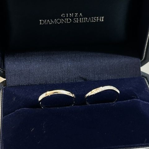 ・斜めラインのダイヤがとても可愛い。 ・マット加工の種類が豊富で選びやすい。 ・過去に例の無い加工をお願いしても応じて貰えた。 ・内側の刻印に鳥居を入れる事が出来とても可愛い。 ・マット加工の質感がとても良い。