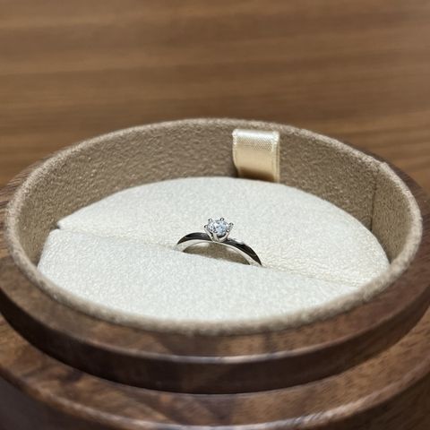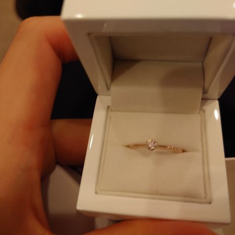 シンプルだからこそ、きらめき方、爪部分のデザインや、指輪の薄さ(つけやすさ)にこだわりました。 これは爪の部分の下が空いているため、下からも光が反射し、本当にダイヤモンドがきれいに輝きます! また、つけている時に不便を感じたくないため石がぼこっと前に出すぎているのが嫌で、外国ブランドだと石部分が飛び出ているデザインが多い印象でしたがこれはそうではなかったのでとても気に入りました。