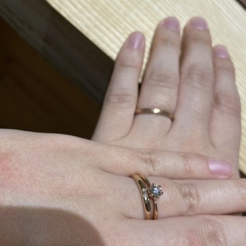 自分たちの好みに出会えた上に、和が特徴の指輪はあまりないので、デザイン、指輪に込められた想いも含めて、オリジナリティ溢れる指輪を作ることができて、最高でした。この指輪のおかげで、今まで以上に結婚の実感がとても湧きました。
