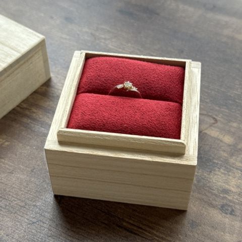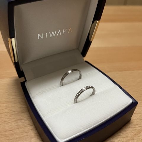 京木目のデザインと付け心地の良さに惹かれて購入しました。ハーフエタニティは一見派手に思われがちですが、艶消し加工が施されているため、それほど目立たず肌に馴染みます。 また、指輪に意味が込められており、木目模様がふたりを包むおだやかで優しい時間を表現しているそうです。