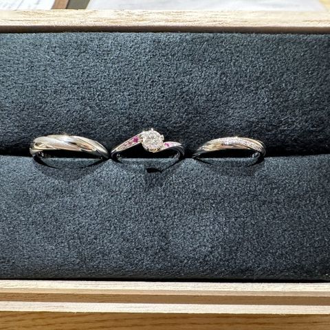 シンプル且つお洒落で、普段指輪を付けないですが、違和感なくつける事が出来ました。一つ一つの指輪にテーマがあり、素敵だなと思いました。実際に出来上がった後もイメージしていた以上の出来栄えで大満足でした。