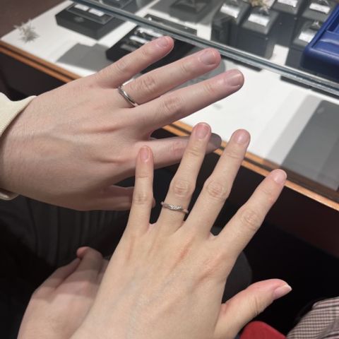 デザインがとてもオシャレで2人とも気に入ったため決めました。さらにつけ心地が他のメーカーと比べて滑らかで良かったのも決め手になりました。 また、ダイヤも希望の通りに付けてもらう事もできたので非常に気に入りました。