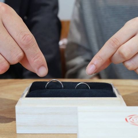 和風で流行りに左右されないデザイン。指輪のデザインに込められたとても素敵な想いもあり指輪選びに迷ってしまいました。夫婦別々のデザインの指輪にしましたが、違ってもちゃんと意味合いで合うようになっているので、同じでもデザインでも違うデザインでも選べるというのが特徴かなと思います。
