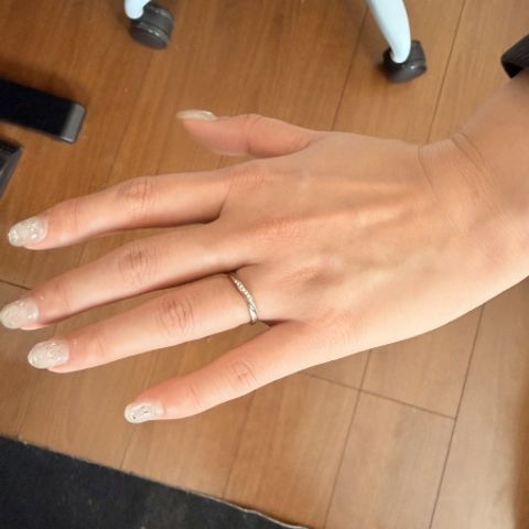 手のタイプ診断で、ウェーブタイプの指輪が似合うということだったので、ウェーブタイプでデザインが好みのものを選びました。小さなダイヤが5つ入っていて、キラキラしていて可愛いです。また、シルバーだけでなく、ピンクゴールドが入っていてとてもお気に入りです。