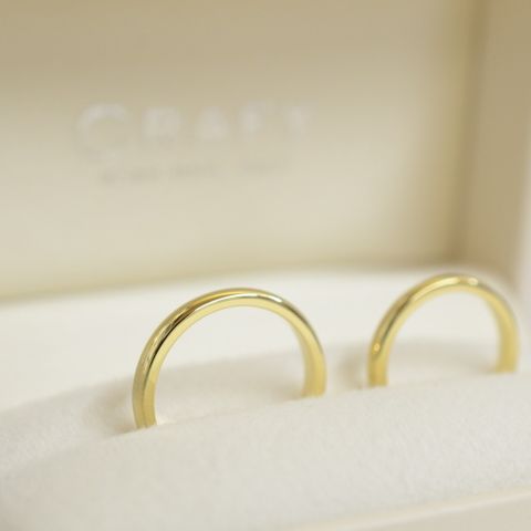 シンプルで上品なグリーンゴールドの結婚指輪に、内側には二人の名前が刻まれていて特別感たっぷりです。飽きのこないデザインなので長く愛用でき、指輪を見るたびにお互いの存在を感じられるのも大きな魅力ですね。