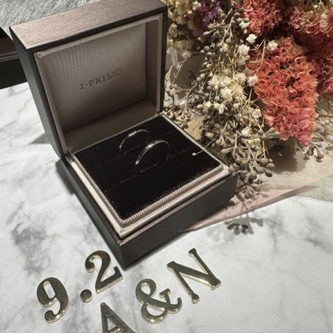 まず、夫婦でおそろいのデザイン、そしてカラーというところにこだわりました。また、裏側の部分にイニシャル・入籍日を刻印したのですが、そこに双子ダイヤというものを埋め込みました。二人のつながりをいつでも感じられる、最高のデザインです。