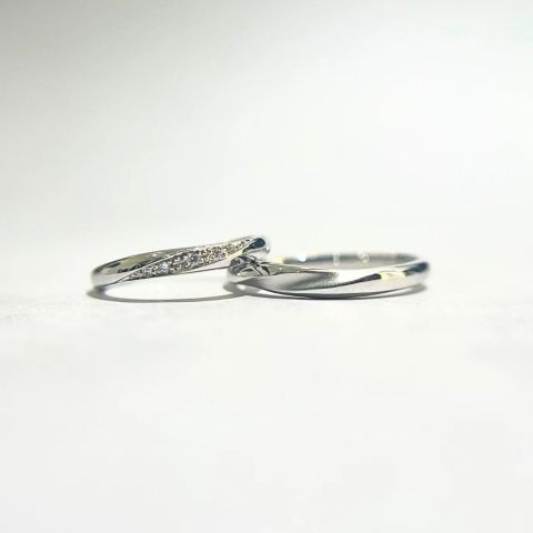 付ける向きを変えることで、ツイスト状のデザインと、シンプルなデザインを使い分けできる点がとても気に入りました。また彼女の指輪はダイヤモンドがくまなく敷き詰められていて、キラキラしており、彼女自身とても満足していました。