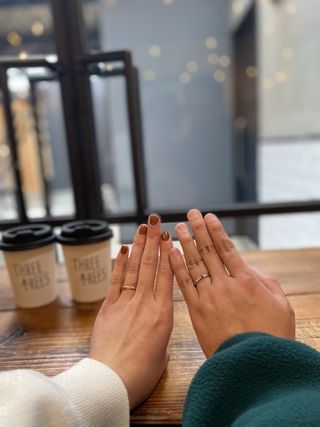 職業柄、大きなダイヤモンドやギラギラしたものではなくシンプルなものを探していた中、キラキラしながらもシンプルなデザインで毎日付けられる指輪を選びました。 私たちの指に合うデザインをたくさんの種類の中から選ぶことができ、付け心地だけでなく見た目もすごくお気に入りです!!