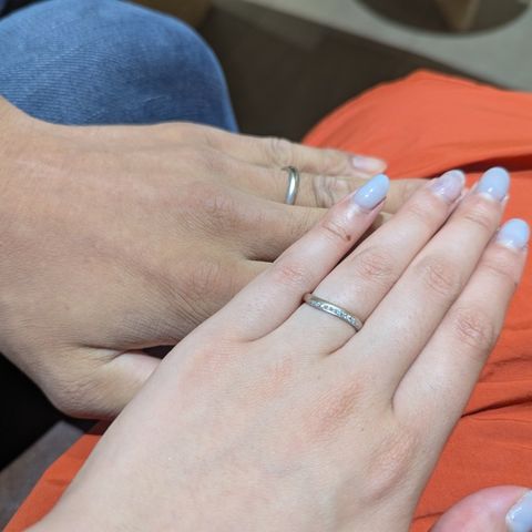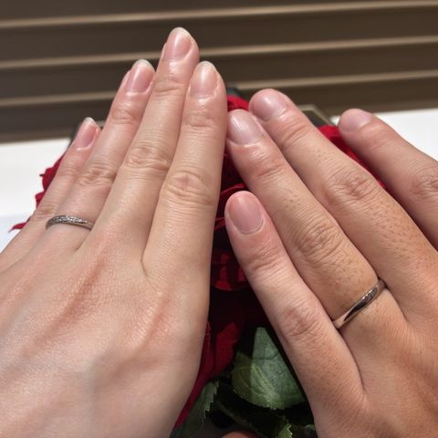 求めていたシンプルなデザイン、何年後もお互いにずっと付けられるようなものを選びました。 派手すぎず、でも存在感特別感のあるものにしたかったのでとても気に入っています。 リング内側の刻印も2人で一緒に考えたので思い出です♪