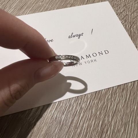 写真では伝えきれないほど、光に触れるとキラキラ輝く指輪でした。他のブランドのダイアモンドと比較して、輝きがとても綺麗な点が特に気に入っています。スポットライトに当たると外出時も様々な輝きが放たれるので毎回身につけるのが楽しみになっています。