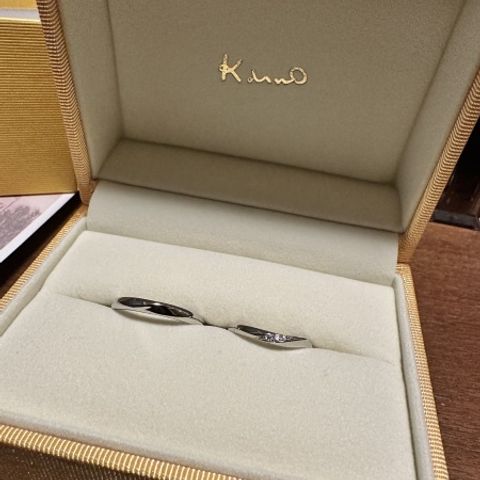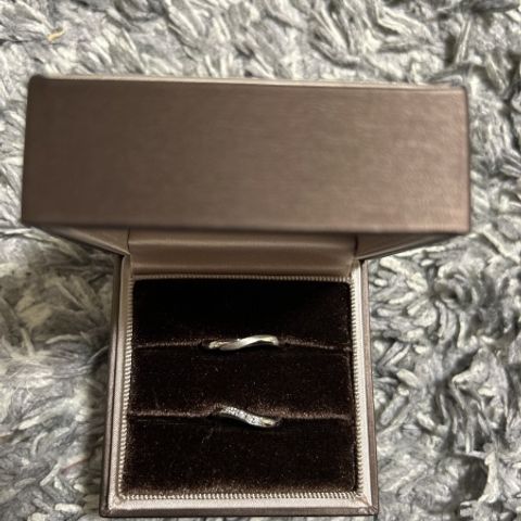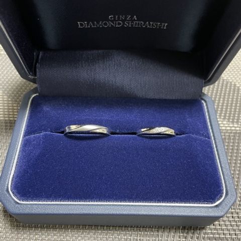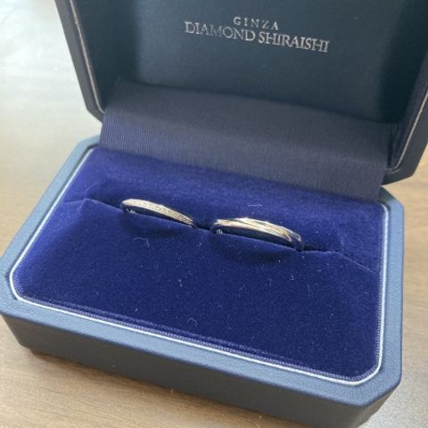 ウェーブタイプで探しており、なかなか男女ともにしっくりデザインが見つからなかったのですが、こちらのお店では作りもしっかりしていて、ダイヤの輝きも素敵で、長く使うことを考えると安心感もあり、こちらに決めました。