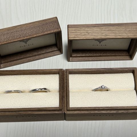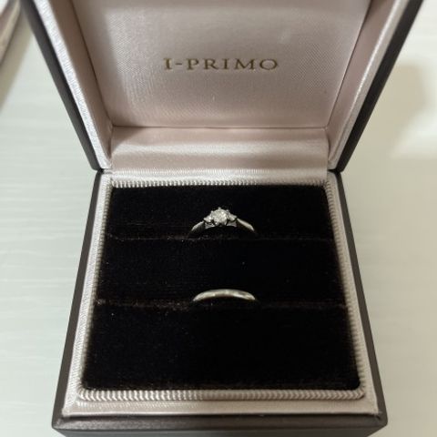 とにかくつけ心地がよいです! 結婚指輪はたくさん試着させていただいた中で特につけ心地がまろやか(表現が合ってるかわかりませんが笑)だったので、毎日ずっと付けていられそうだなと思い選びました! 内側に思い出の風景とイニシャルを刻印していただきました、、デザイナーさんすごいです。 婚約指輪は引っ掛けてしまいそうだったので、あまり高さが出ずに付けられるもので選びました。 ダイヤがキラキラで嬉しくなります!