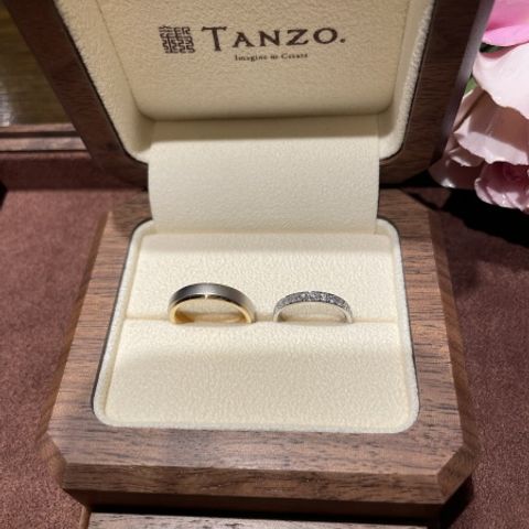 結婚を決めてから初めて試着した結婚指輪です。 他のリングやブランドでも試着しましたが、指輪のストーリーとシンプルでありながら存在感のあるデザインに惹かれて購入しました。 夫用の指輪は他にないマットな質感で気に入っています。
