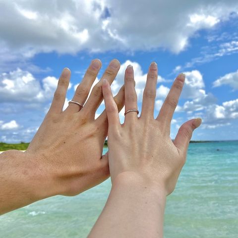 2人とも指輪の種類は違うといえど、同じようなデザインで選びました。数あるデザインの中で、私はウェーブを選びました。派手すぎないデザインで日々着用するにあたりぴったりなデザインです。また内側に刻印も掘ってもらって記念に残るデザインに仕上げました。