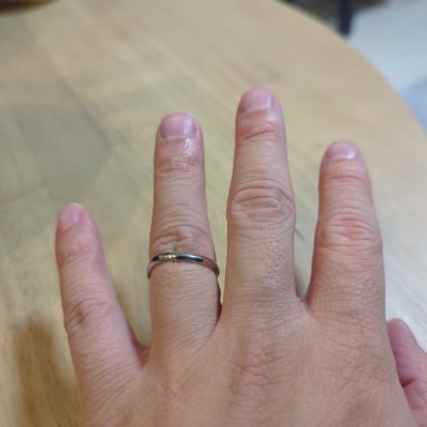 価格は予算内でした。関節が太い新郎にも、水かきの高さが違う新婦にも、両方に似合うデザインを選ぶことができました。 金属を流し入れる鋳造ではなく、金属素材を圧縮して成形する鍛造で作られているので強度が高く、日常生活で安心して使えると思っています。