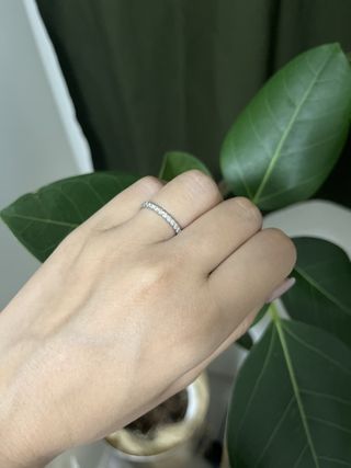 6つのダイヤが悩んでて、シンプルかつゴージャスなデザインでお気に入りです。 ずっと付けっぱなしにしておきたいので普段の生活にも馴染みやすく、着け心地も良いです。 主人と同じデザインの指輪でさらにお気に入りです。