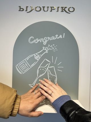 様々なデザインから選ぶことができ、名前入れなどの2人のこだわりも反映することができました。サイズ選びの時もスタッフさんがこまめにアドバイスをしていただけたこともあってつけ心地もとても良く素敵な指輪を作ることができました。