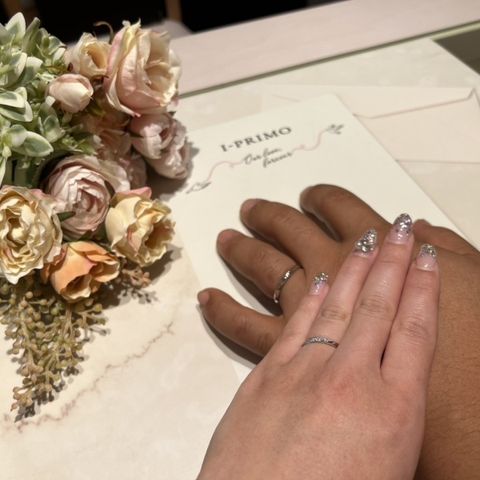 結婚指輪は日常的につけるのでとにかくデザイン重視で選びました。ペアで買いたかったこともあり自分と旦那さんお互いが気に入ったペアのものを購入しました。また指輪に込められたストーリーがすごく素敵だったのも購入の決め手になりました。他にも何店舗か回ってアイプリモさんに伺いましたが、着け心地も良く価格もお手頃でデザインも自分好みで即決でした。