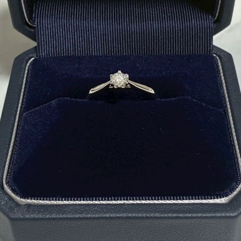 彼女の名前に花が付いているのでお花をイメージしたリングを選びました。Dランクのとても綺麗なダイヤモンドです。 シンプルで普段使いできるダイヤモンドのサイズ感とデザインにしました。リングの太さもとても良かったです。