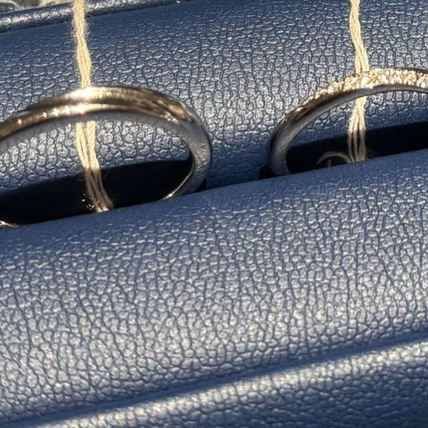 女性用は真ん中に石があり目立ち過ぎない希望通りの大きさでワンポイントとしてオシャレ。男性用はシンプルだがマット加工がされていて、色のトーンがくっきりわかるので派手過ぎず清潔感があってとてもよい。指輪の大きさ、重さなどバランスもよくつけ心地がよい。