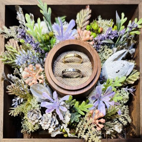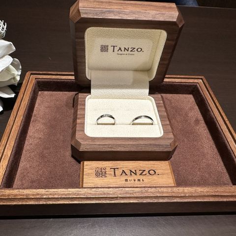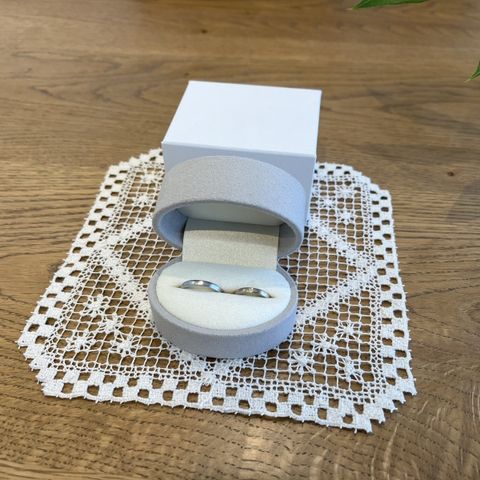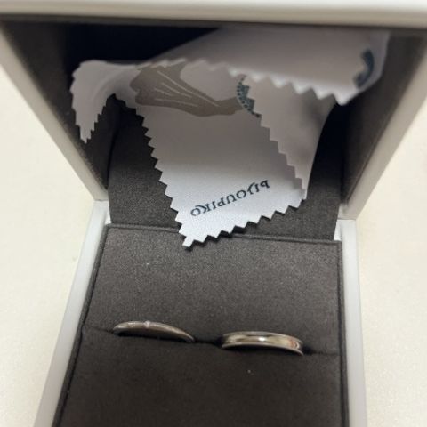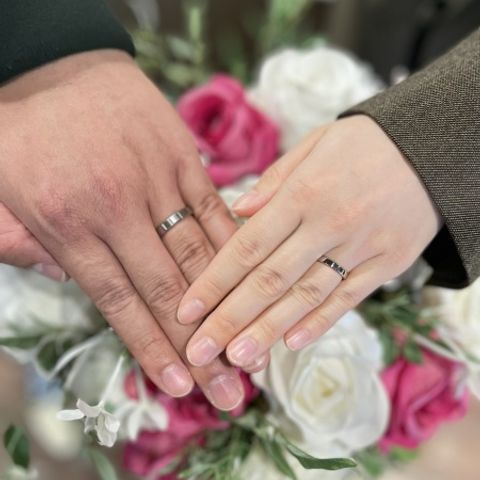 和のテイストを取り入れたデザインが印象的で、シンプルながらも上品な存在感のある指輪でした。派手すぎず日常使いもしやすい一方で、さりげなくあしらわれたダイヤモンドが美しく輝き、特別な日の象徴としてしっかりと華やかさを添えてくれます。落ち着いた雰囲気の中にも特別感を求める方にぴったりのデザインだと思います。