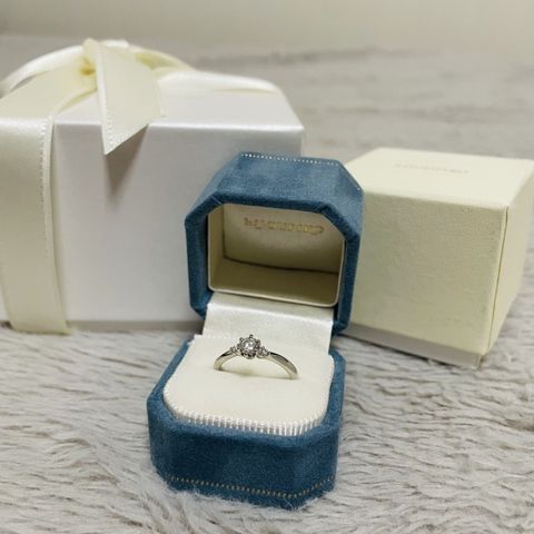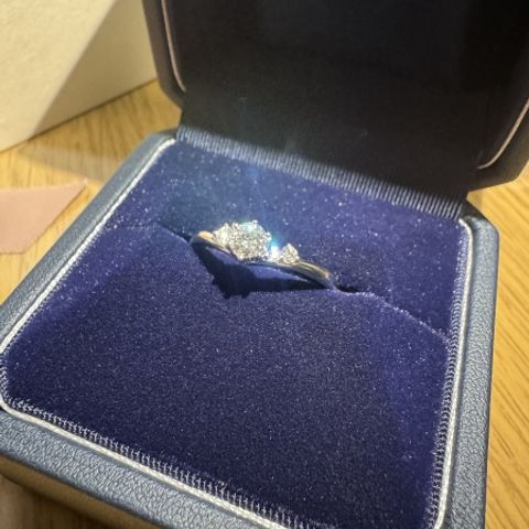 ダイヤの輝きがとてもよく、どこから見ても七色に光って見えます✨ 着け心地とてもよく、1番の決め手は着け心地です! 胡桃の木の箱で納品していただき、箱もとっても可愛いです。メンテナンスも充実してるみたいです。