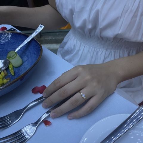 指輪はシンプルなプラチナ製で、丸みのある形状が指に自然にフィットするデザインです。普段使いにも適しており、価格帯も納得感のあるものでした。しかし手作りで制作したことで、金額以上の価値を感じられ、特別な思い出として強く残る指輪になりました。手間暇をかけた分、シンプルながらも自分たちだけの想いが込められた唯一無二の指輪です。
