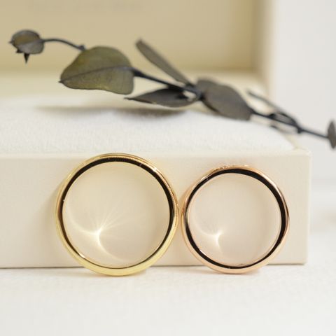K18ゴールドで質感はセミマットの指輪です。 金属の素材や質感デザインをたくさんの中から選ぶことができ、いくつも試着させていただいて決めました。少し太めの指輪ですが付け心地も良く、普段アクセサリーを全くつけない彼も、指輪が届いてからは違和感なくずっとつけられているそうです!湾曲している部分があるので指輪のイメージも違って見せることもでき、後々石を追加したりすることもできるのでアレンジも楽しめそうです。
