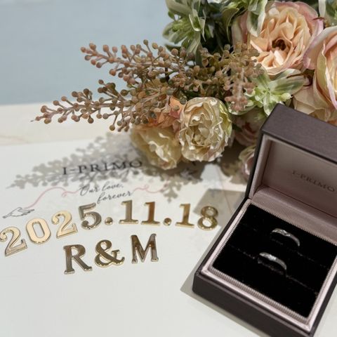指輪のデザインがとてもお気に入り。 新婦の指の特徴に合わせて ウェーブかかったデザインのを選び 新郎はそれに合わせてウェーブの色をコンビにし ピンクゴールドの色で合わせ お互いとても納得いく指輪をえらぶことができた。