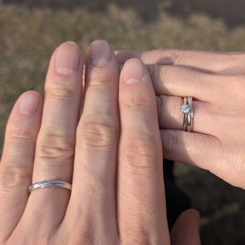 お店でパーソナルハンド診断をしてもらい、私たちに似合う指輪を見つけることができました。指輪の購入は初めてだったので、何も分からず不安でしたが、指が綺麗に見える指輪を見つけることができ、大満足です。仕事柄、毎日指輪をつけることができないのですが、時々プライベートでつける指輪だからこそ、着け心地の良いものを選びました。小さな一粒のダイヤも最初はいらないと思っていたのですが、受け取ってみるとやはりダイヤ入りでよかったです。