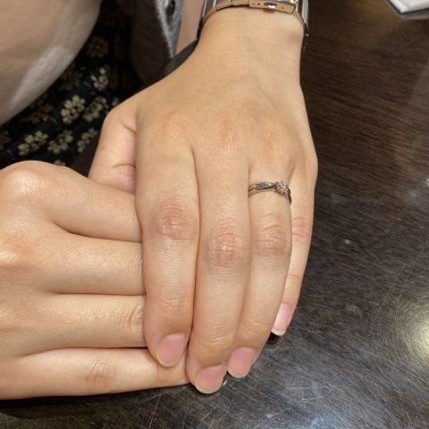 ストレートに気持ちを伝えたかったので、指輪の輪郭も真っ直ぐなタイプにしました。シンプルなデザインなのでどんなシーンでも着用出来、とても気に入っています。またダイアモンドは派手過ぎず王道のタイプなので誰にでも似合うデザインかと思います。
