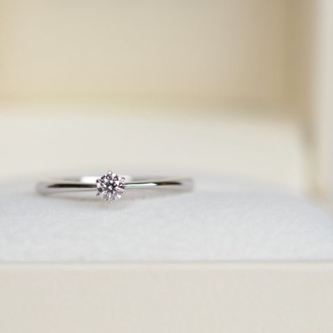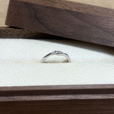 シンプルなデザインを探していました。いくつも指輪を見せていただく中でストレートすぎず、ウェーブすぎないデザインに惹かれました。光が当たるとキラキラ光るダイヤモンドもとても可愛いです。高価すぎないのにとても上品な指輪だと思います。