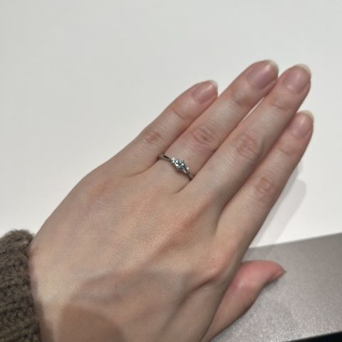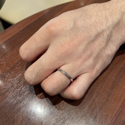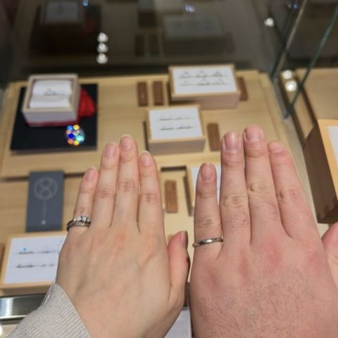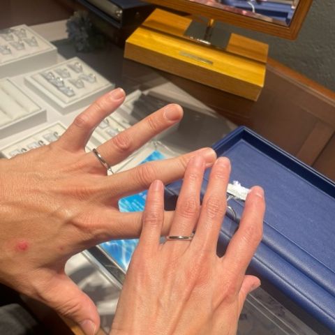 手の形が違うためペアリングを選ぶことはできませんでしたが、 形の似たもので店員さんにデザインを合わせてもらいました。 付け心地がよく、外れにくいものと、お互い好みに合うよう選びました。お互いの納得できる指輪を見つけられてよかったです。