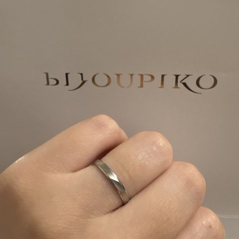 毎日つけていても気にならないような付け心地の良い指輪です。軽くて薄いので、付けていることを忘れるくらい馴染みます。指を閉じた時に痛い、気になるといったことが全くないです。裏面が平らで指にフィットしてくれるので、私のように関節が細いタイプでも落ちる心配がないのも魅力でした。