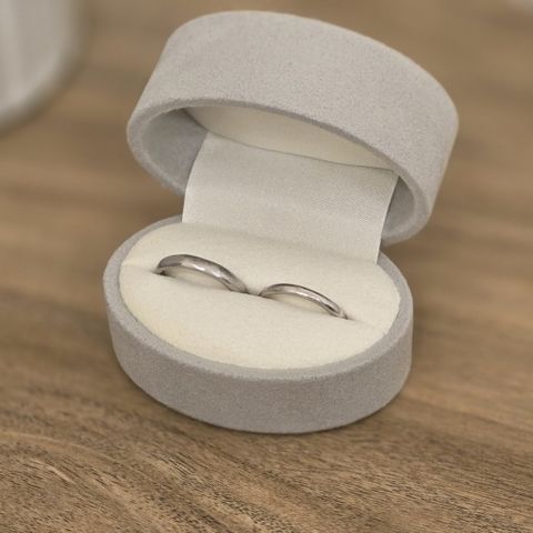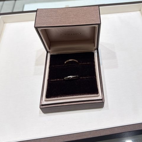 主人はプラチナ、私はゴールドで作りたかったため、 あえて同じ素材にはせず、それぞれの想いを大切にしました。素材は異なりますが、デザインを揃えることで、 ふたりらしい統一感を表現しています。 また、裏面にはお互いの指紋を刻印していただき、 離れていても常に相手を感じられる、特別な意味を込めました。たくさん悩み、話し合いながら決めた、 世界にひとつだけのオーダーメイドの結婚指輪です。