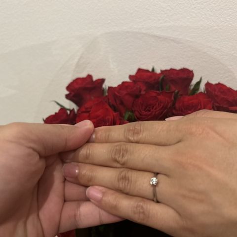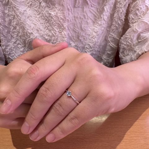 ストレートに気持ちを伝えたかったので、指輪の輪郭も真っ直ぐなタイプにしました。シンプルなデザインなのでどんなシーンでも着用出来、とても気に入っています。またダイアモンドは派手過ぎず王道のタイプなので誰にでも似合うデザインかと思います。