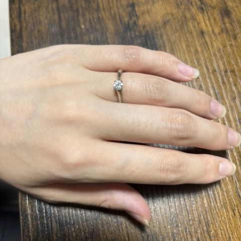シンプルで見た目もオシャレで重ね付けもしやすい。 婚約指輪は、普段つけないイメージも多いがこれならずっと付けれる。デザインがどの指輪ともあうので、重ね付けした際により一層指輪が強調されてとても良いと思う。