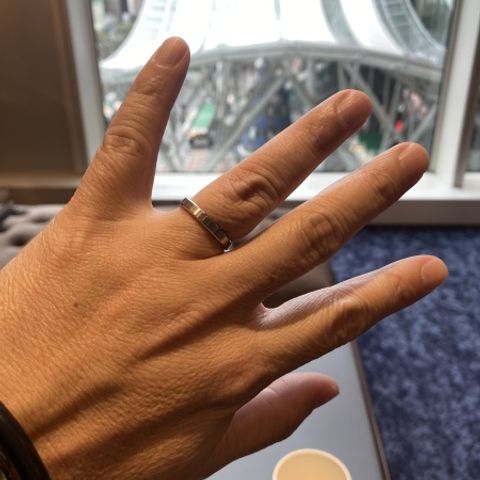 細身で無駄のないデザインが指に自然になじみ、長時間つけても違和感のない軽やかなつけ心地です。日常にも特別な日にも寄り添い、重ね付けもしやすく、飽きずに長く愛用できる指輪です。夫婦ともども日常的に着けていますが違和感が全くありません。