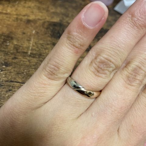 シンプルで着け心地がいいです。 年齢を重ねてもつけ続けられるデザインです。 今回ウェーブ型でプラチナにゴールドのラインが入っています。 色ごとに表面処理を変えてもらえるので自分好みにカスタムできます!