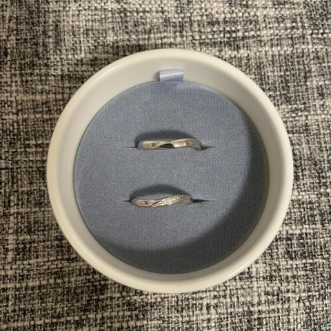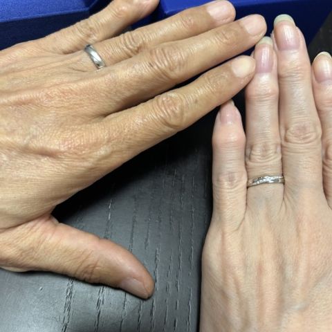 いくつか探した中で、1番指が綺麗に見えて、ふたりのペア感をしっかり感じられる指輪でした。ダイヤの入り方も控えめなのに存在感があり、デザインはシンプルだけど他にはない個性があって、とても気に入っています。