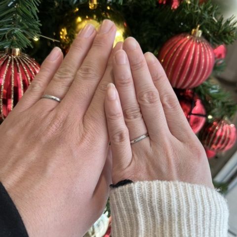 鍛造製法ならではの付け心地の良さで、普段指輪を着けない私でも違和感なく着けることができました! お互いの好みが違うので、どんなデザインにしようかと悩んでいましたが、フルオーダーなので、自分たちの思う通りのデザインにすることができました!