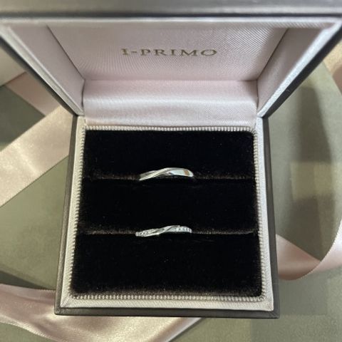 指輪にはいろんなデザインがあると思いますが、その中でも私たちはウェーブデザインがお気に入りだったので、デザインを絞って選びました。人から見てもウェーブが分かるようになっているので、とてもおしゃれで気に入っています。
