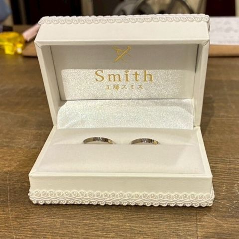 鍛造製法ならではの付け心地の良さで、普段指輪を着けない私でも違和感なく着けることができました! お互いの好みが違うので、どんなデザインにしようかと悩んでいましたが、フルオーダーなので、自分たちの思う通りのデザインにすることができました!