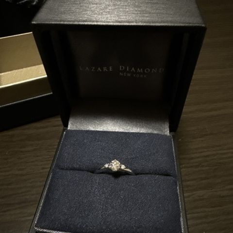 ダイヤモンドカット会社なだけあって、ダイヤモンドの輝きがピカイチだった。七色の輝きが特徴ということで、まさにきらびやかな輝きだった。デザインもその輝きに負けず華やかで、満足するものだった。全体的にケチのつけのうのないリングだった。