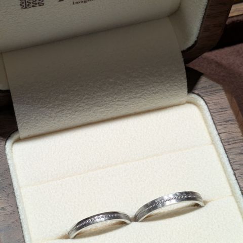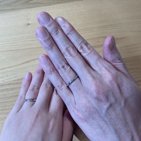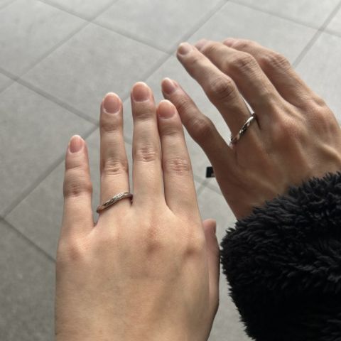 結婚指輪を購入させていただきました。 まず第一に着け心地が最高です!着けている感覚を忘れてしまうくらい馴染んでおり、普段アクセサリーを着けない方でも違和感なく毎日着用できると思います。 次にデザインについて、いくつものサンプルリングの中から好みのデザインを厳選しました。派手なものではなくシンプルなもので自分達の好みを存分に反映できたのでとても満足しています!