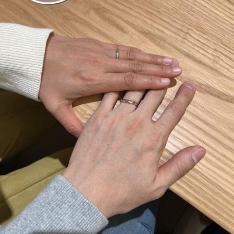 それぞれ自分の手に馴染む色味を選べて、デザインもそれぞれの好みに合わせて かつさりげなくペア感のあるものに仕上がったので満足しています。 特に憧れだったミル打ち加工と、夫は周囲に気づかれにくい下側に 私は周囲にも見える上側にスターダスト加工を入れたところがお気に入りです。