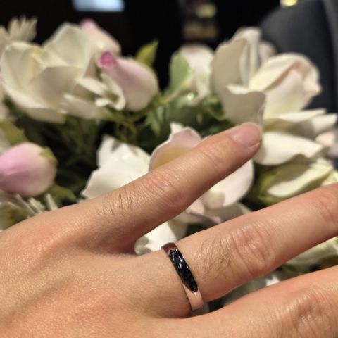シンプルでエレガントな私達らしい指輪の 仕上がりでとても満足しております。 ダイヤが入ってとても綺麗です。 新郎でもダイヤを入れても良いという アドバイスをいただいたこと 嬉しかったです。 本当にありがとうございました。